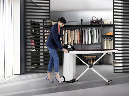 Điều chỉnh độ cao vô cấp Đơn giản là tiện dụng: lò xo áp suất khí tích hợp đưa bàn ủi đến độ cao làm việc hoàn hảo. (83 đến 102 cm)