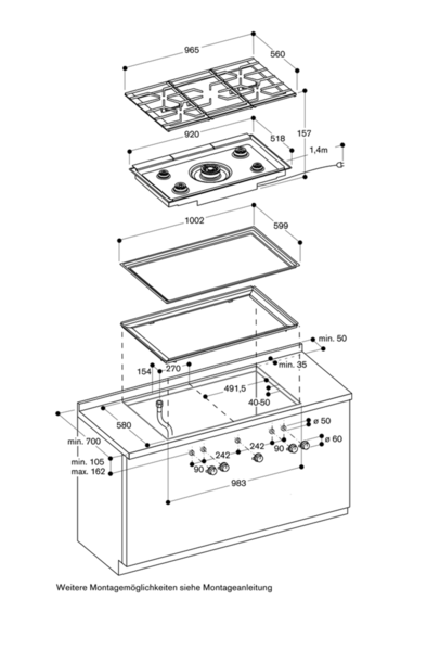 Kích thước lắp đặt Bếp Gas âm bàn Gaggenau Seri 400 CG492211