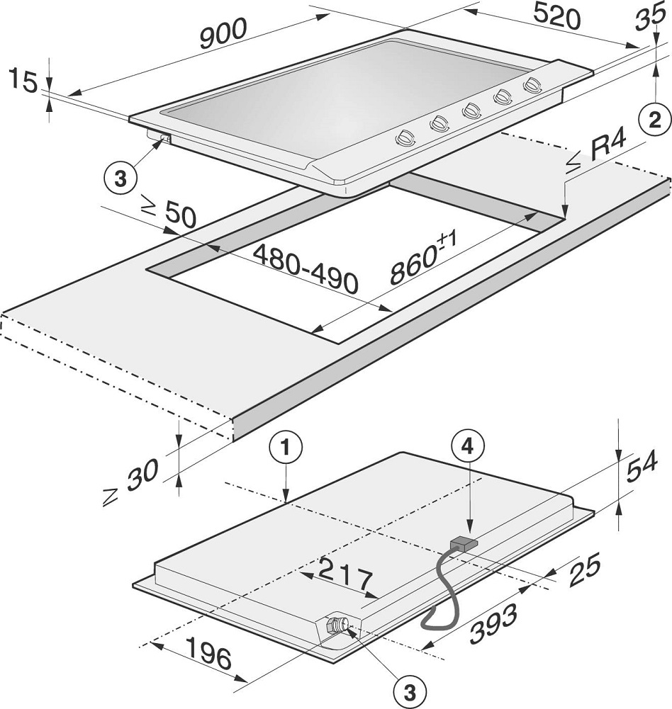 Kích thước lắp đặt Bếp Gas âm bàn Miele KM 2034