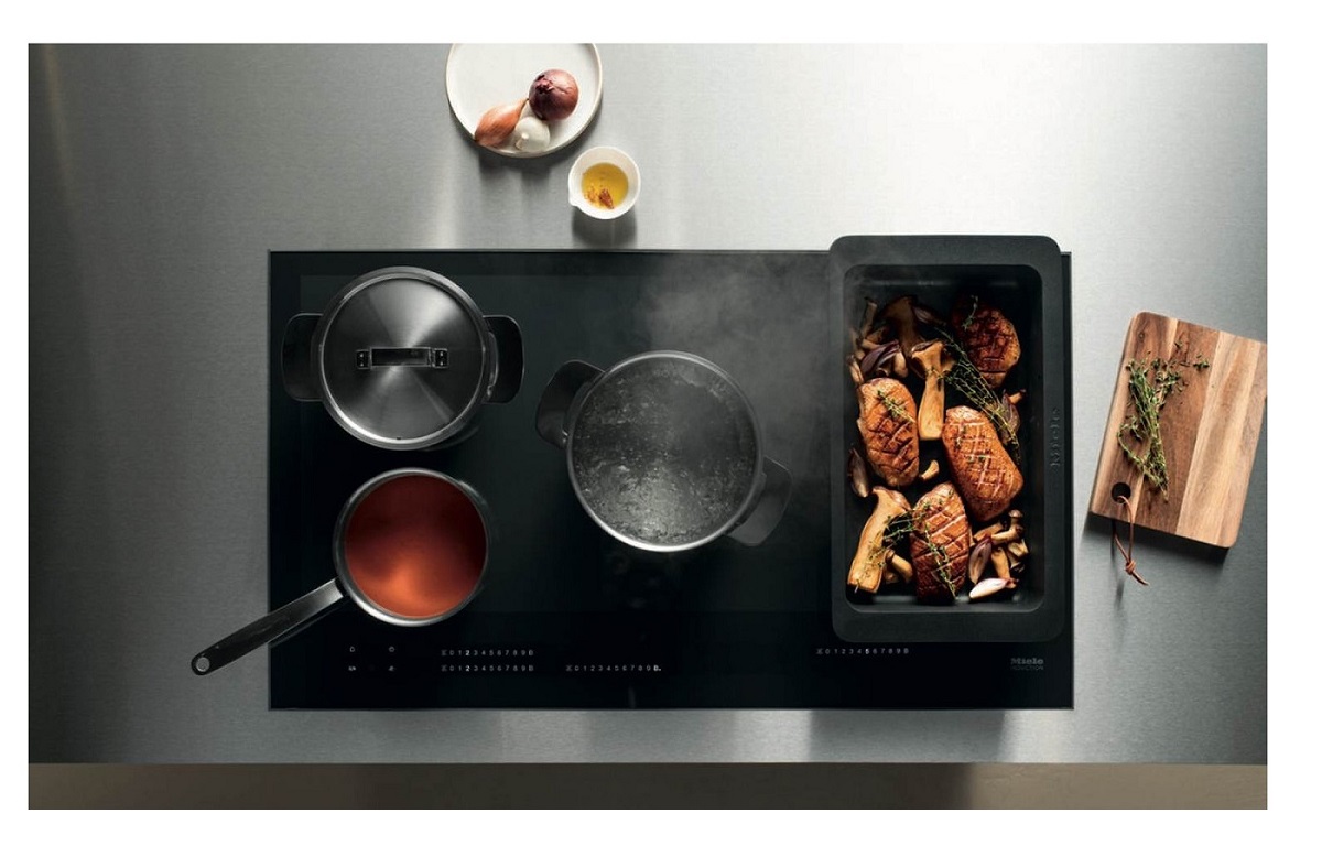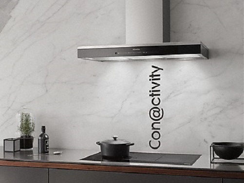 Kết nối không dây với hút mùi Miele: Hút mùi tự động tăng giảm công suất hút đáp ứng các cài đặt của bếp.