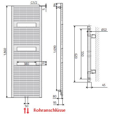 Bộ sấy, sưởi phòng tắm HSK Atelier-Highline 62 x 186 cm