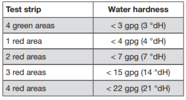 Bạn cũng có thể xác định độ cứng gần đúng của nước bằng cách sử dụng giấy chỉ thị màu có trong phụ kiện máy