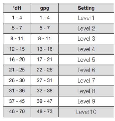 Đảm bảo rằng mức độ cứng của nước được đặt chính xác. Một cài đặt không chính xác sẽ làm mất hiệu lực của bảo hành.