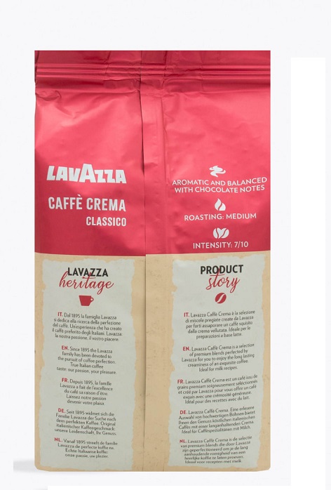 Lavazza Caffè Crema Classico là một loại cà phê Ý chính thống. Nó là sự pha trộn của 70% hạt cà phê Arabica và 30% Robusta. Cà phê đã trải qua quá trình rang vừa phải, nhưng vẫn có vị đậm đà. Nó được cân bằng độc đáo giữa sức mạnh, hương thơm và độ kem.