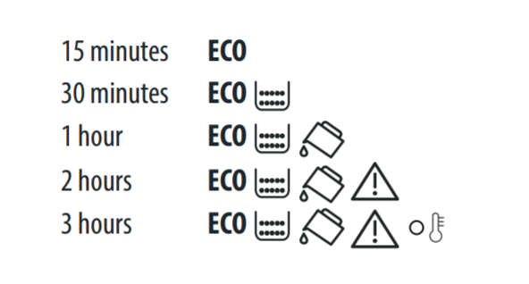 2. Nhấn nút 1 (1 cốc cafe ít) để chọn thời gian biểu thị bằng các hình trên màn hình điều khiển tương ứng với thơi gian như hình dưới đây: