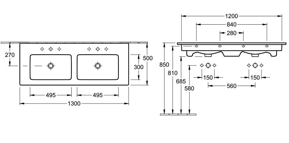 Chậu Lavabo đôi, 2 lỗ vòi Villeroy & Boch Venticello 4111DLR1