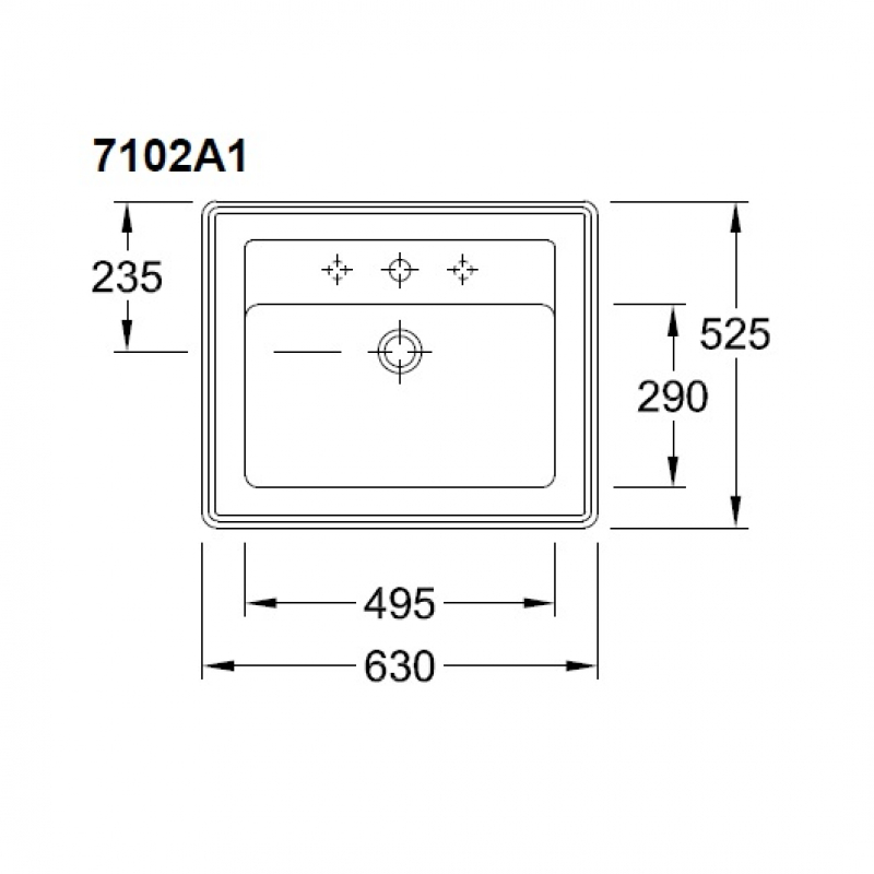 Kích thước Chậu Lavabo Villeroy & Boch 3 lỗ vòi Hommage 7102A1 630 x 525 mm