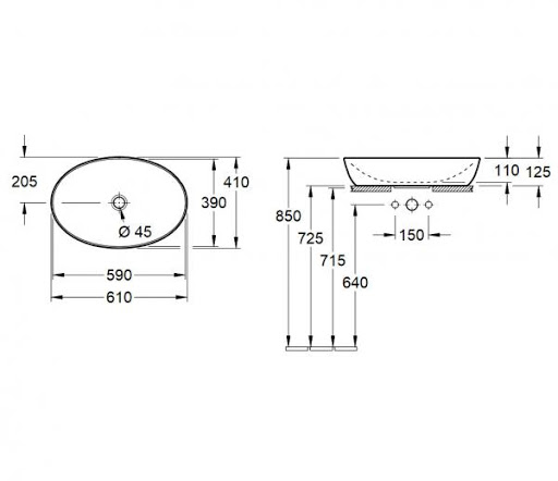 Kích thước lắp đặt Chậu Lavabo Villeroy & Boch Artis 419861R1