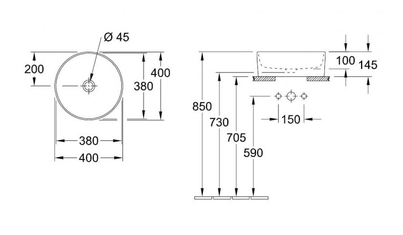 Kích thước lắp đặt Chậu Lavabo Villeroy & Boch Collaro 4A184001