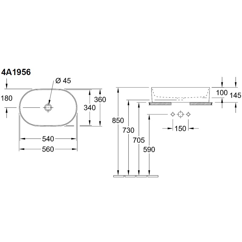 Kích thước: Oval 560x360mm 145 mm