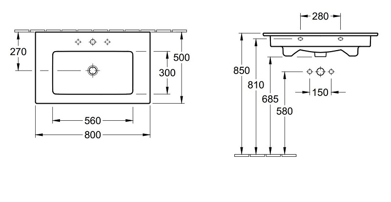 Kích thước lắp đặt Chậu Lavabo Villeroy & Boch Venticello 41048LR1