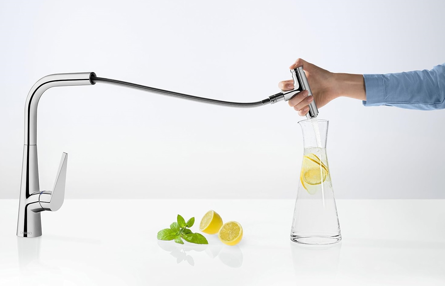 Có ai thích dọn dẹp không? Với QuickClean, cặn vôi và bụi bẩn trên vòi nước và vòi hoa sen hansgrohe sẽ biến mất ngay lập tức. Chỉ cần chà xát các ống mềm dẻo làm bằng silicone