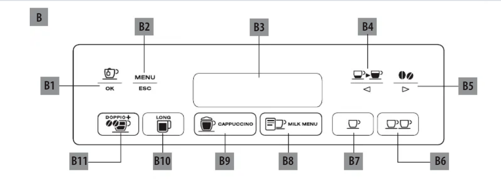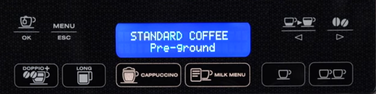 - Nhân nút B5 cho đến khi màn hình hiện dòng chữ Standard Coffee Pre-Ground