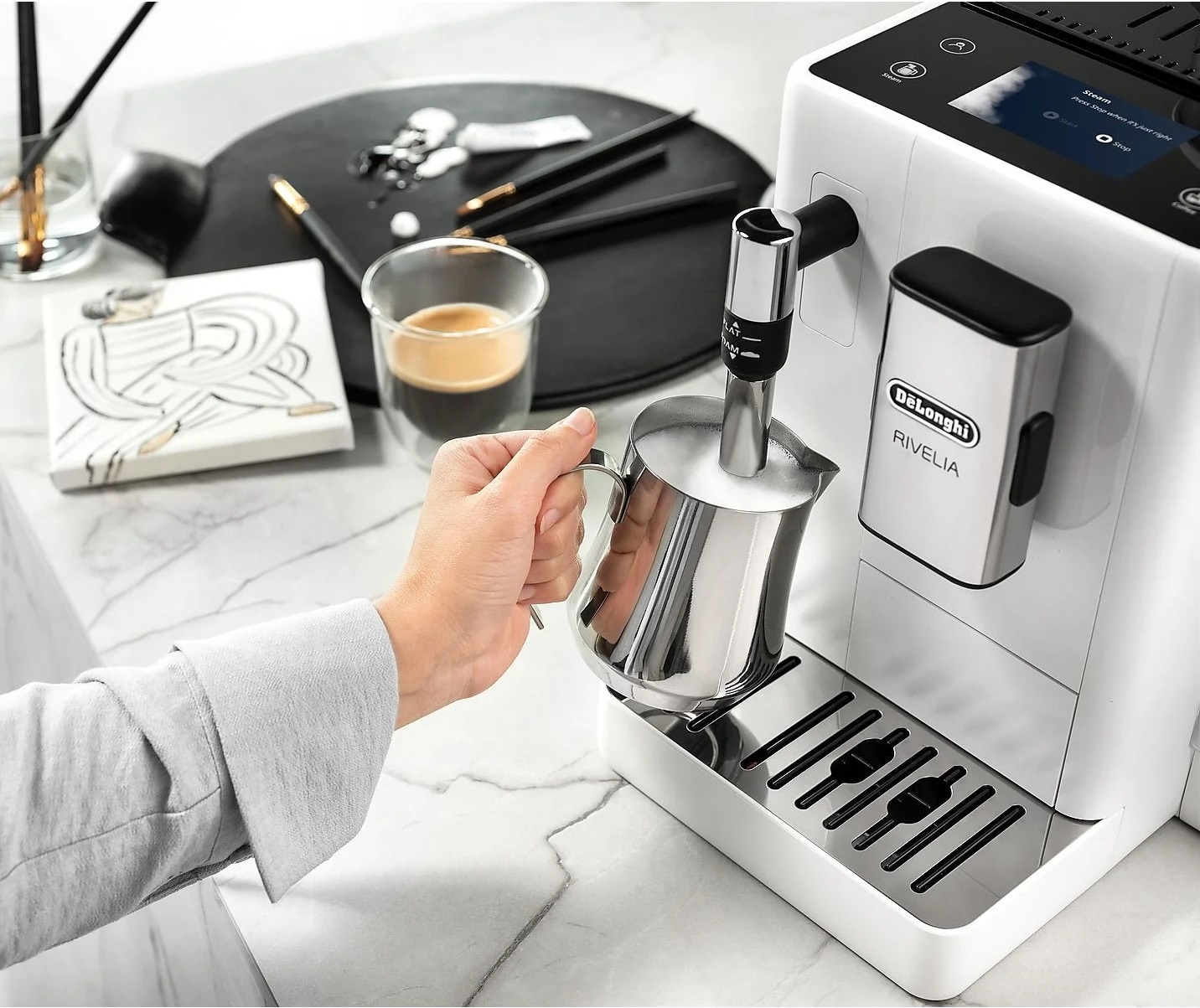 DeLonghi Rivelia EXAM440.35.W là máy pha cà phê được thiết kế để đặt trên mặt bàn bếp.