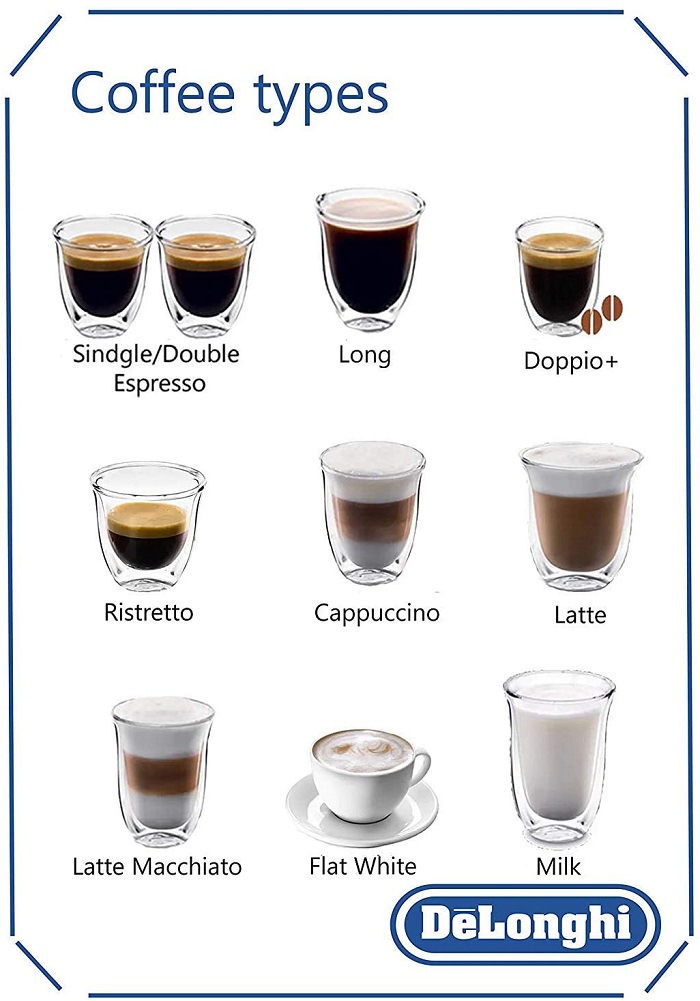 Doppio +:Doppio là tiếng Ý có nghĩa là gấp đôi và nó có nghĩa là bạn muốn có một tách espresso gấp đôi. Đó là kích thước cà phê espresso tiêu chuẩn trong nhiều quán cà phê.