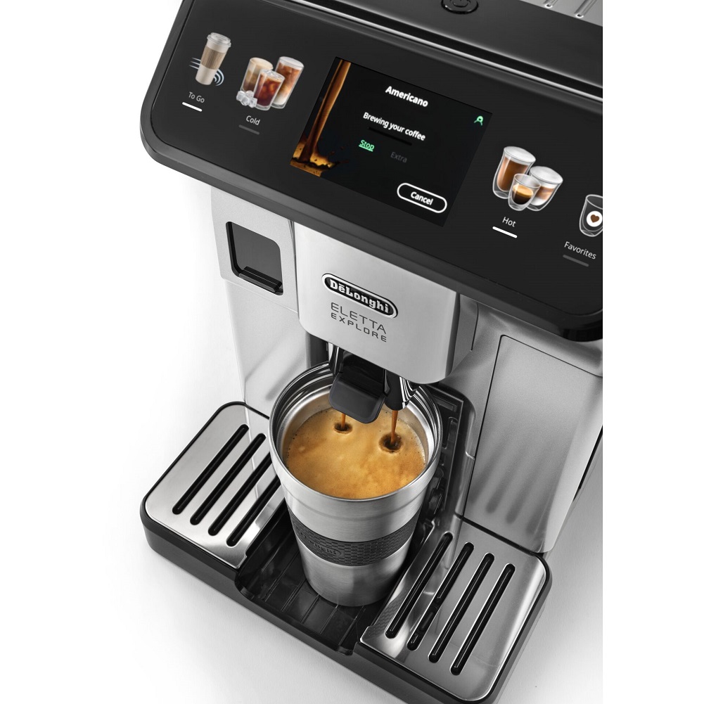DeLonghi ECAM 450.55.S Eletta Explore là hiện thân của nhiều năm kinh nghiệm và bí quyết kỹ thuật của De'Longhi với tuyên bố mang lại trải nghiệm thưởng thức cà phê hoàn hảo.