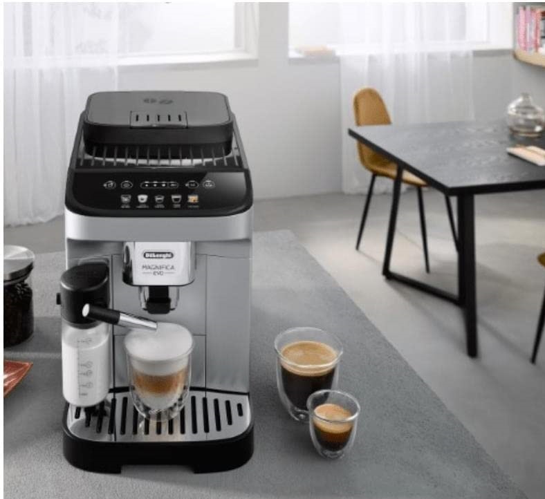 Máy pha cà phê De'Longhi Magnifica Evo ECAM 290.61.SB nhanh chóng lấy một ít cà phê xay để tạo ra một thức uống thơm ngon với màu sắc đẹp và mùi tăng thêm sinh lực. Các điều khiển rất dễ dàng và thuận tiện. Bạn nhanh chóng chọn phong cách ưa thích của mình bằng cách sử dụng màn hình tích hợp. Nhờ tích hợp hệ thống hiện đại, bạn có thể pha hai loại cà phê cùng lúc. Tất nhiên, một loạt các cài đặt có sẵn. Ngay từ đầu, bạn có thể chọn lượng cà phê hoặc nước, tạo ra cường độ lý tưởng của bạn.