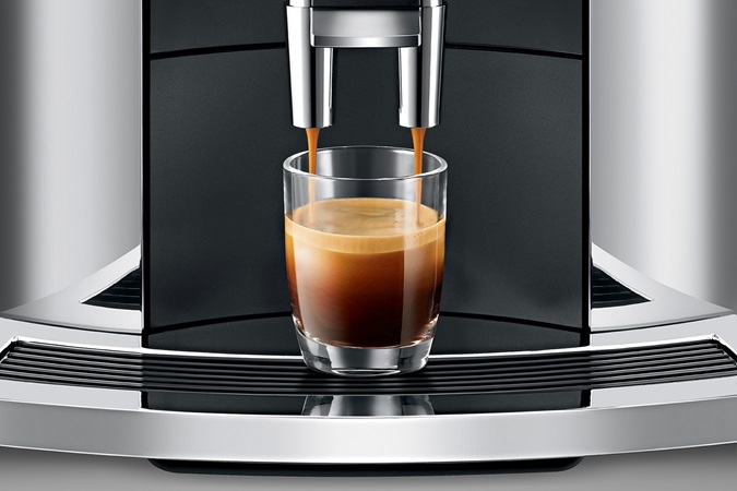 Máy pha cà phê JURA có thiết kế đặc trưng sạch sẽ và biểu cảm. Vật liệu chất lượng cao và tay nghề thủ công chính xác làm nổi bật chất lượng cao cấp của E8 hiện đại. Chỉ riêng kiểu dáng của nó đã là bằng chứng về chất lượng, chức năng và độ bền của nó. Các chi tiết như két nước được tạo rãnh hay lưới tản nhiệt dạng cốc mạ chrome cao cấp bổ sung hoàn hảo cho thiết kế hài hòa, gọn gàng của E8.