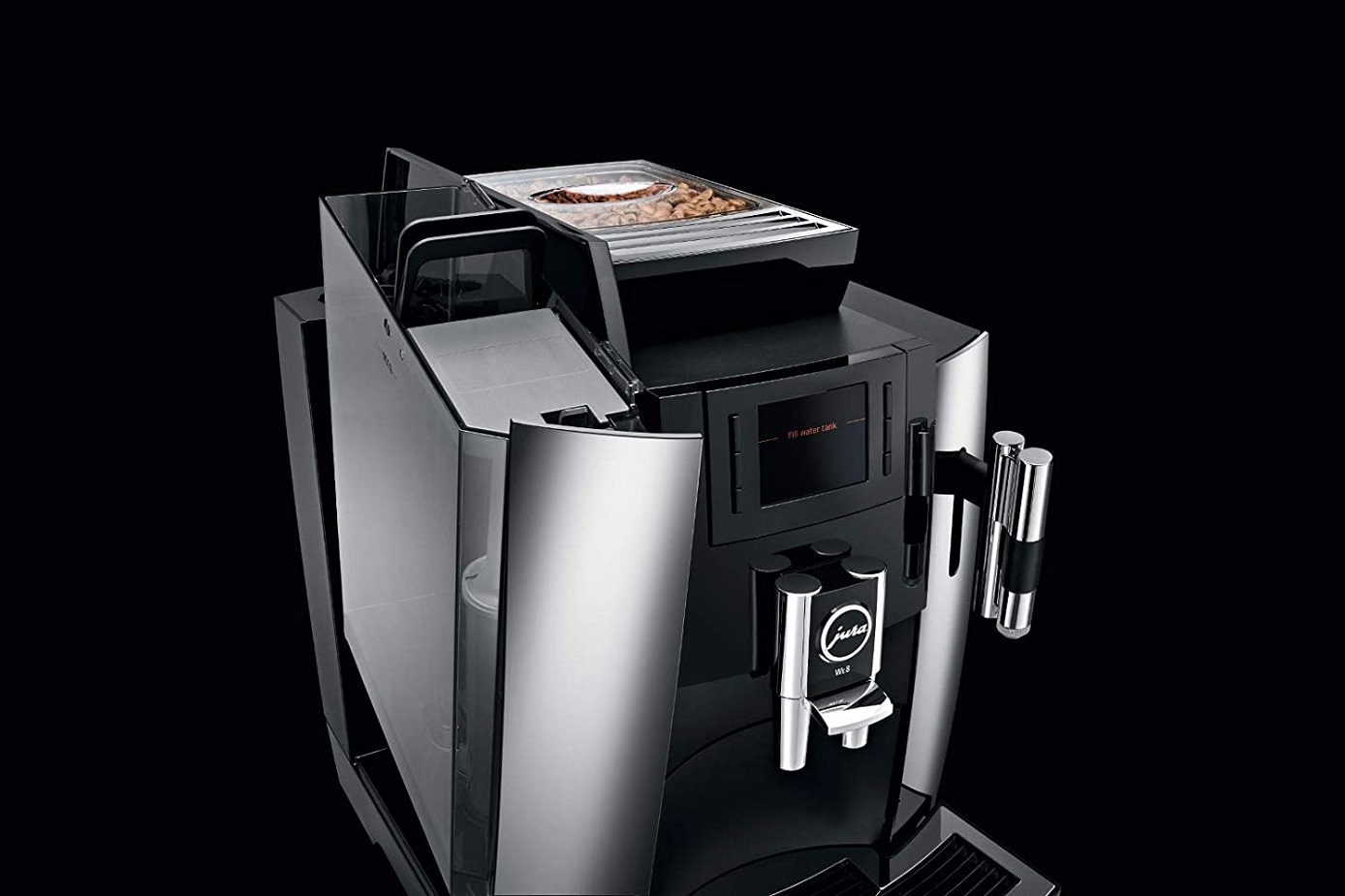 Máy pha cà phê JURA có thiết kế đặc trưng sạch sẽ và biểu cảm. Vật liệu chất lượng cao và tay nghề thủ công chính xác làm nổi bật chất lượng cao cấp của E8 hiện đại. Chỉ riêng kiểu dáng của nó đã là bằng chứng về chất lượng, chức năng và độ bền của nó. Các chi tiết như két nước được tạo rãnh hay lưới tản nhiệt dạng cốc mạ chrome cao cấp bổ sung hoàn hảo cho thiết kế hài hòa, gọn gàng của E8.