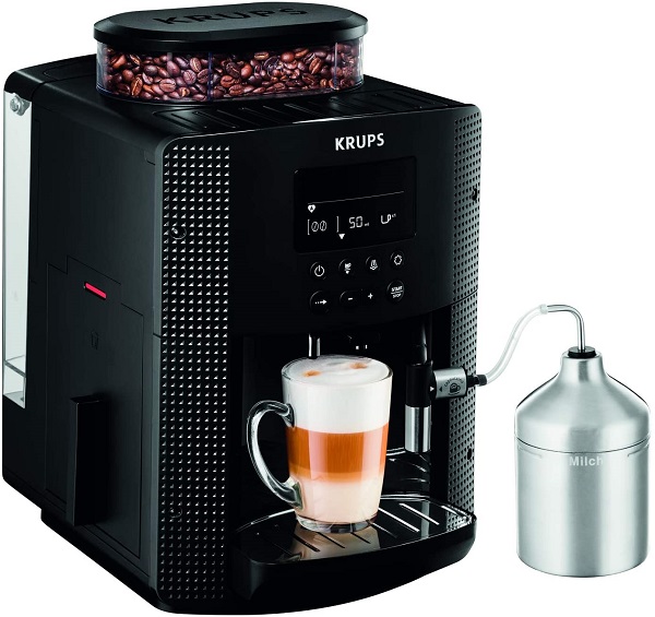 Máy pha cà phê tự động Krups EA8160, kèm bình và vòi hút sữa tự động, với màn hình hiển thị LCD trực quan và các tính năng chất lượng cao khác. Với các tùy chọn cài đặt cá nhân cho độ đậm nhạt cà phê, lượng nước và nhiệt độ, đảm bảo được thưởng thức ly cà phê chuyên nghiệp ngay tại nhà Đặc biệt nhờ vào hệ thống phun sữa tự động "CappuccinoPlus" có chức năng hút từ bình sữa và tự động tạo bọt sữa, giúp bạn sẵn sàng cho 1 ngày mới với ly cafe Cappuccino sành điệu Vệ sinh dễ dàng với chương trình làm sạch và tẩy rửa tự động Hệ thống lọc Claris Aqua cho ly cafe hương vị tinh khiết.