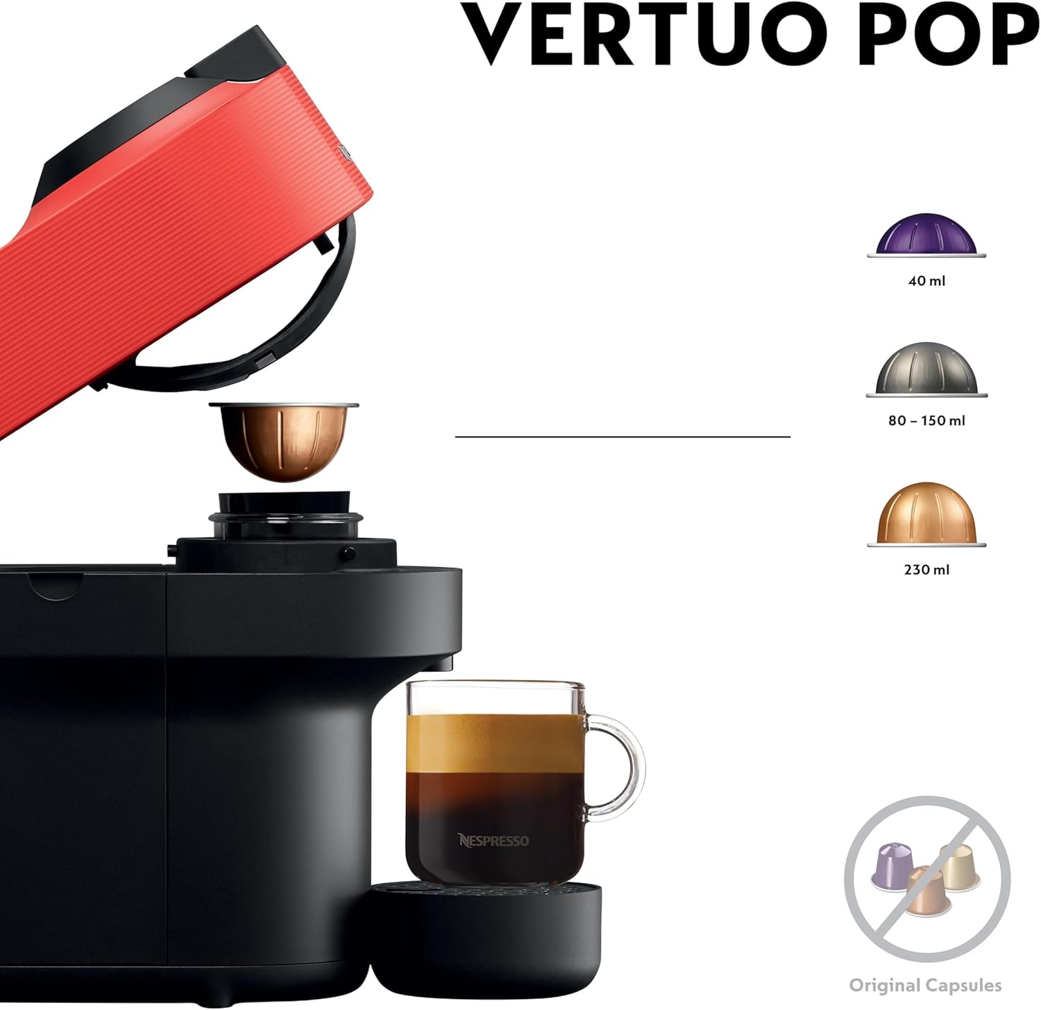 Năm kích cỡ cốc Cafe có thể pha được Alto (414 ml), Mug / Coffee (230 ml), Gran Lungo (150 ml), Double Espresso (80 ml) và Espresso (40 ml), thông qua ba kích thước viên nang khác nhau: viên nang lớn cho Alto và Mug / Coffee, vừa cho Gran Lungo và Double Espresso và một nhỏ cho Espresso.