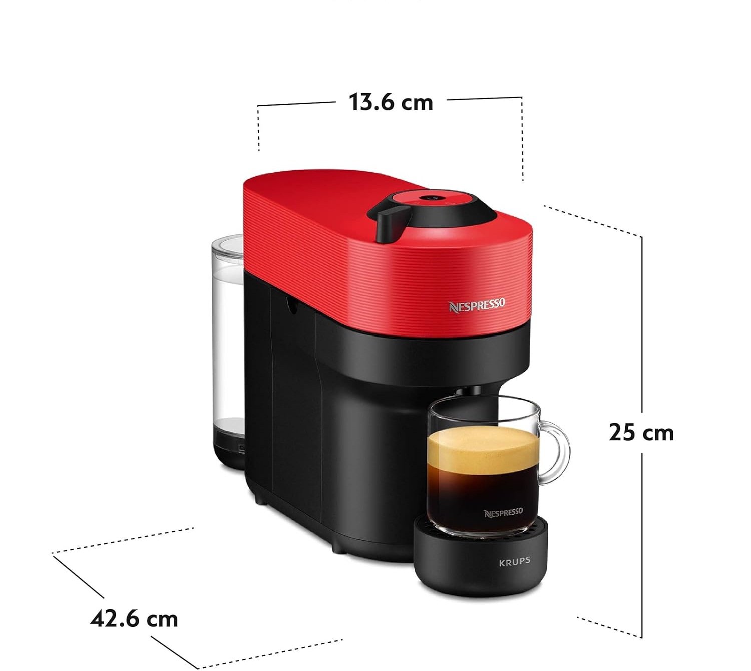Viên nén được tự động đẩy ra sau khi pha. Để phù hợp với các kích cỡ cốc khác nhau, giá đỡ cốc có thể điều chỉnh được ba vị trí hoặc có thể tháo rời hoàn toàn.