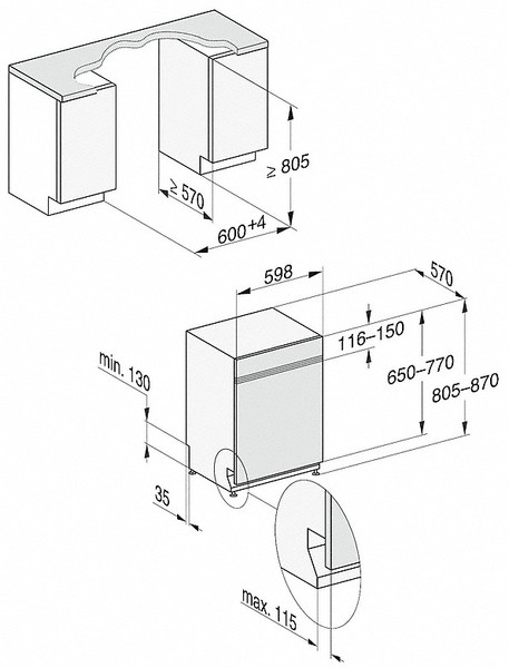 Kích thước lắp đặt Máy rửa bát Âm tủ Miele G 7915SCi XXL AutoDos