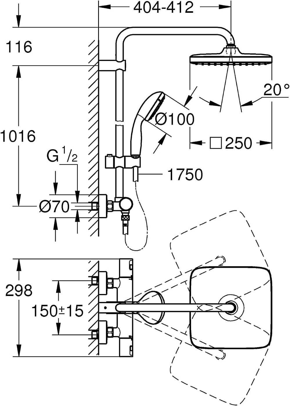 Kích thước lắp đặt Sen cây ổn nhiệt Grohe Grohe Vitalio Start 250 26696000