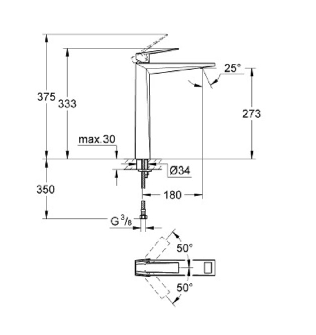 Kích thước Vòi Lavabo Grohe Allure Brilliante XL 23114000 ( Cao x Dài) : 333 x 180 mm