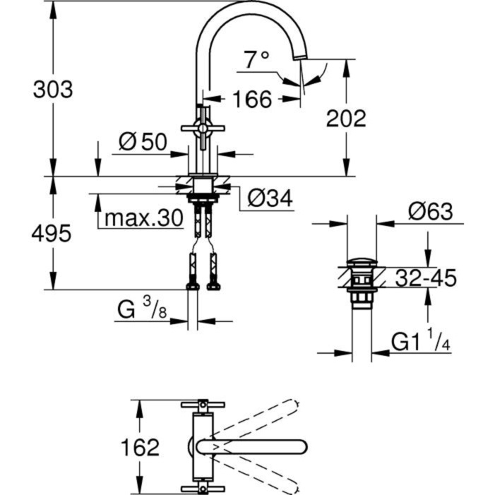 Bản vẽ kỹ thuật Vòi Lavabo Grohe Atrio Size L 21019GL3
