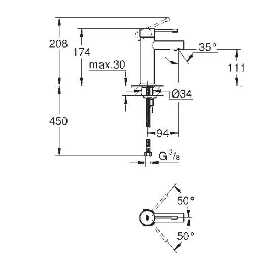 Bản vẽ kích thước Vòi Lavabo Grohe Essence 34294001
