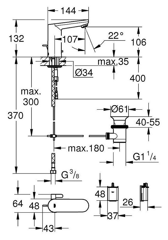 Kích thước lắp đặt Vòi lavabo tự động Grohe Eurosmart CE 36331001